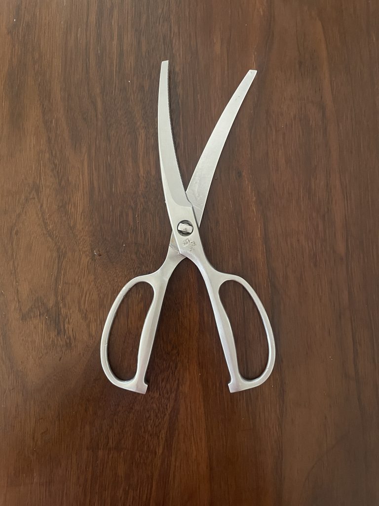 皆さん、キッチンばさみってお使いですか?私にとっては必需品で、キッチンになくてはならないものです。パッケージの開封には、別の鋏を使いますが、キッチンバサミは、お肉やねぎ、ピザ・・それからまな板を使うことが面倒な時、何でもサクッと切れて、大重宝しています。ピザ等もこの鋏の方がずっと切りやすいです。