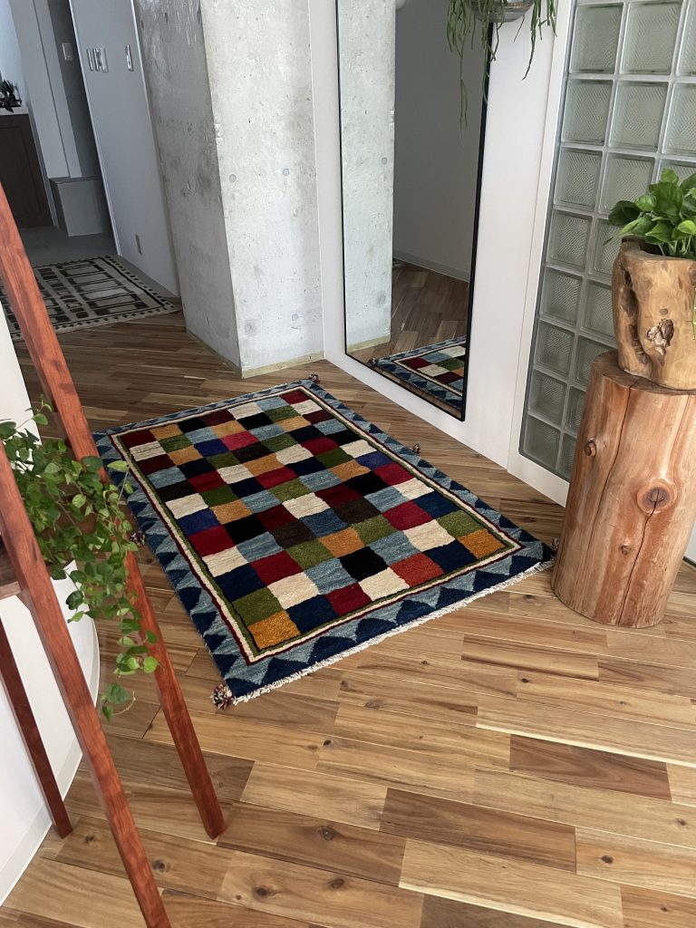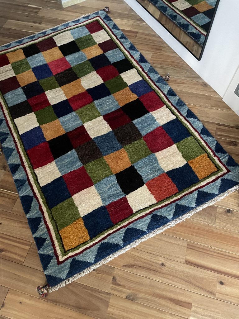 知ったかぶってすみません。ギャツベもペルシャ絨毯の一種ですが、ペルシャ絨毯がシルクの細い糸で織られるのに対して、ギャツベは羊(ウール)の太い糸です。なので早く大きな面が完成するので、ペルシャ絨毯の中でも安価なもの。