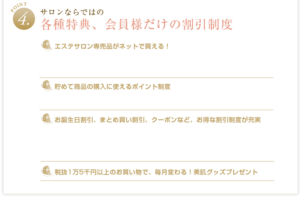 当店で販売中の商品はすべて、年齢肌、敏感肌のお客様のサロンケアで実際に使用しているエステサロン専売品です。